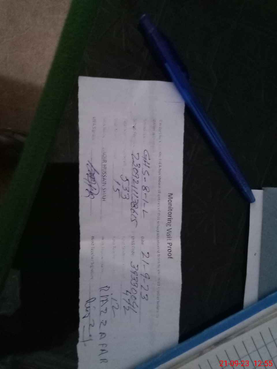 | Name: RI**** ZA**** Designation: (School Headmaster's/Headmistress's) In-charge H M Phone/Cell Number: 03**** |