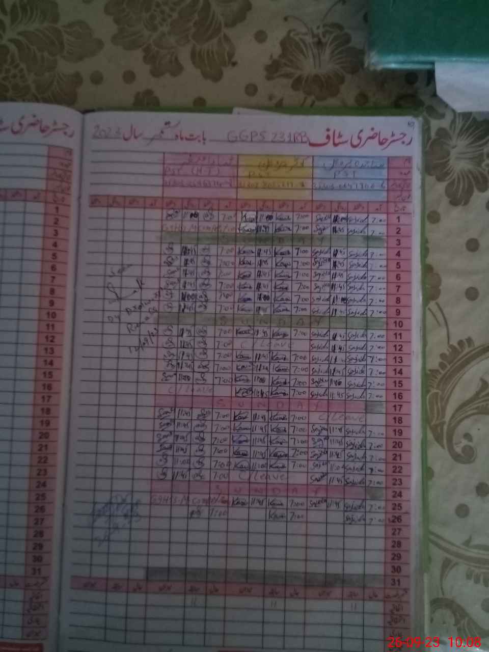 | CNIC | Full Name | Designation | R/C | Absence During Last Calender Month |