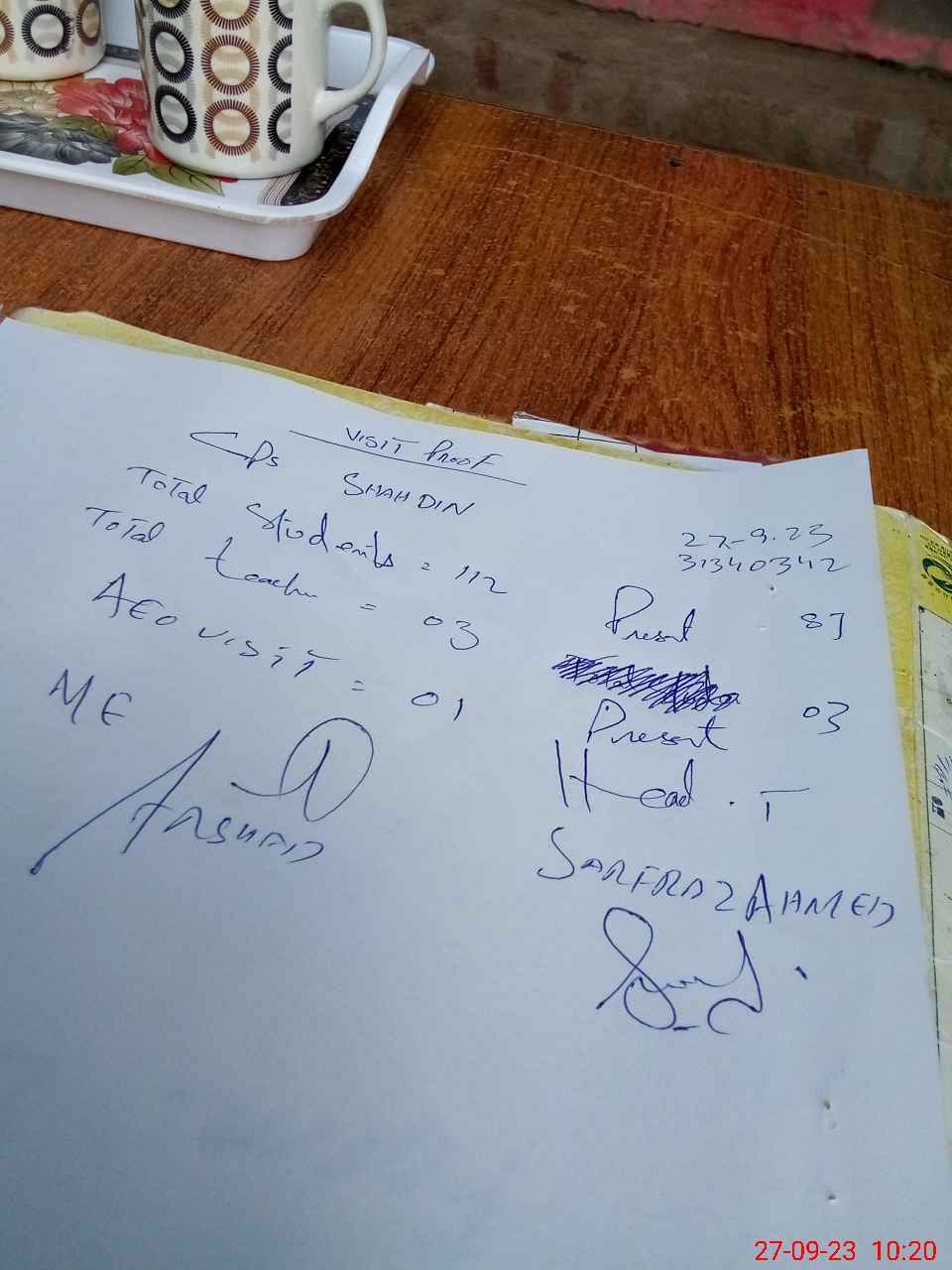 | EMIS Code: 31340342 | Name of School: GPS SHAH DIN | |||