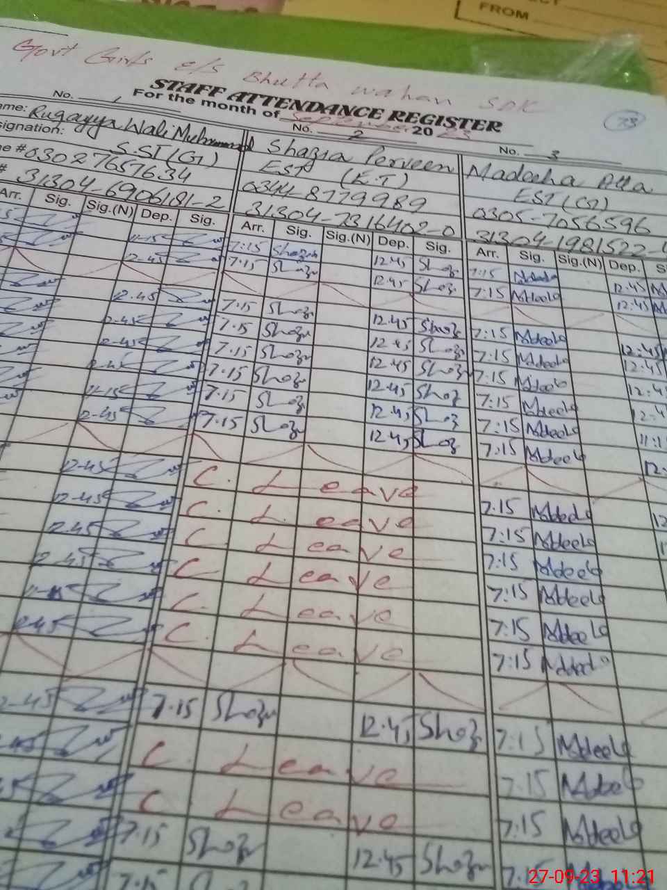 | Name: Sh**** Pe**** Designation: (School Headmaster's/Headmistress's) EST Phone/Cell Number: 03**** |