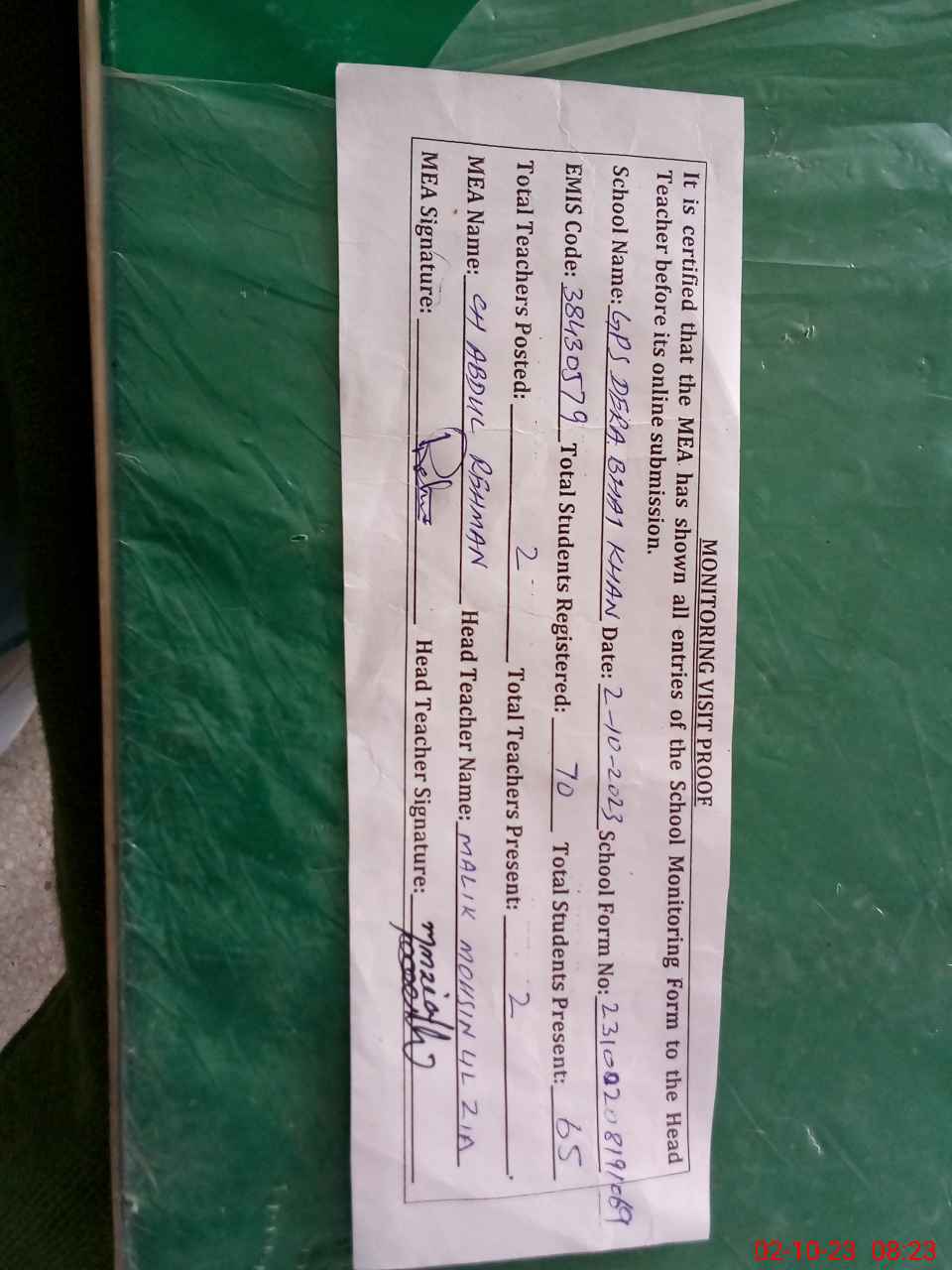 | EMIS Code: 38430579 | Name of School: GPS DERA BHAI KHAN | |||