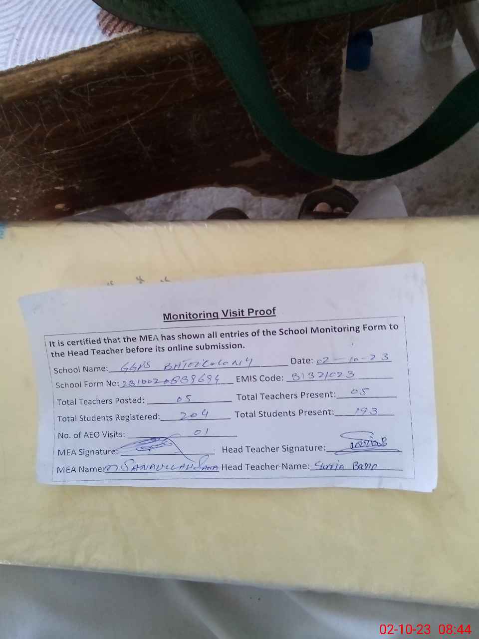 | EMIS Code: 31321023 | Name of School: GGPS BHUTTO COLONY FEROZA | |||