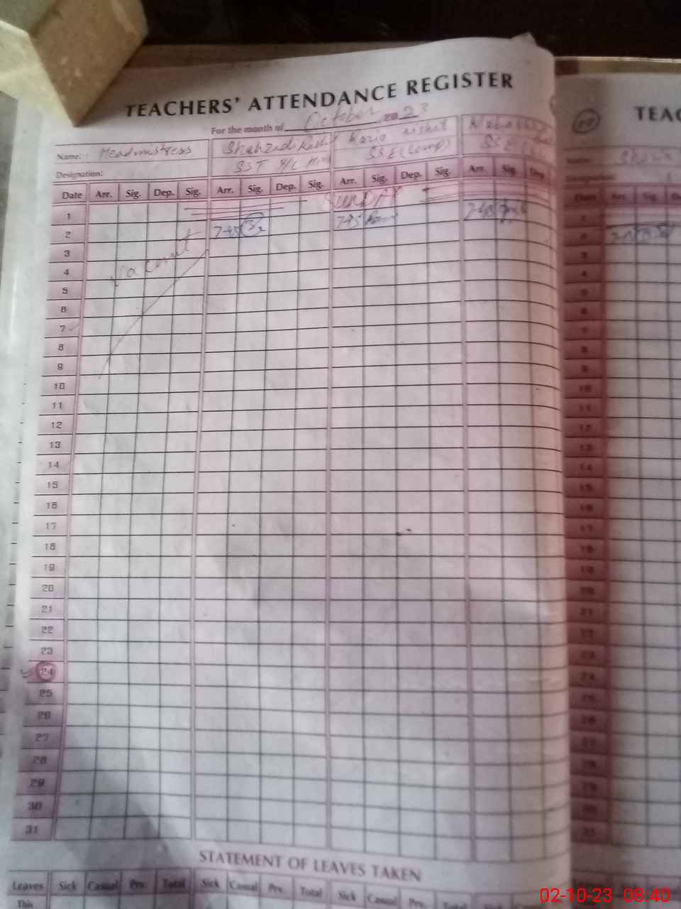 | 33**** | Qa**** Za**** | NQ | Regular | 0 | 0 | 30 | 0 | 0 | 0 | 0 | 0 | 0 | Absent (Un-Authorized) |