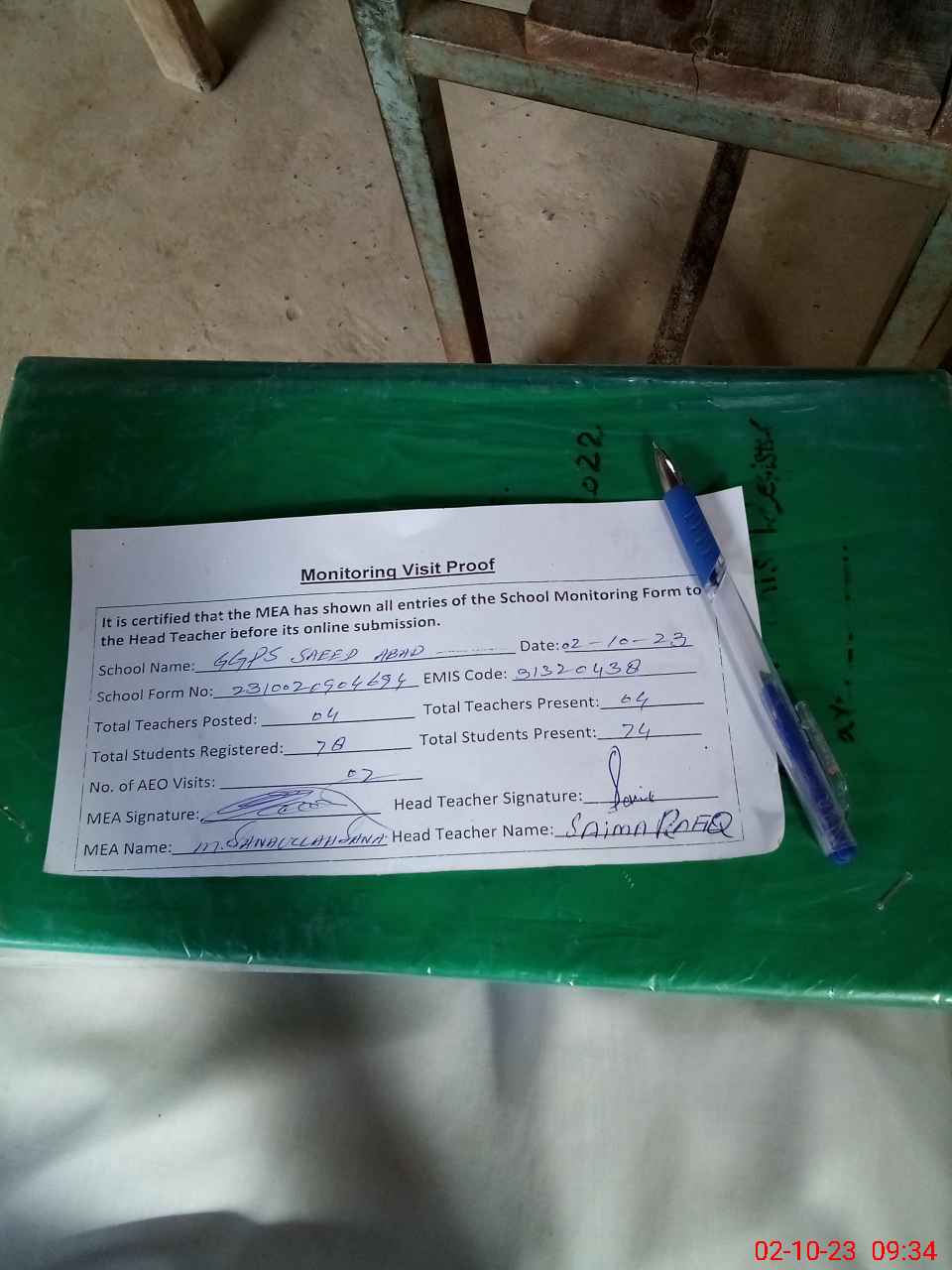 | EMIS Code: 31320438 | Name of School: GGPS SAEED ABAD | |||