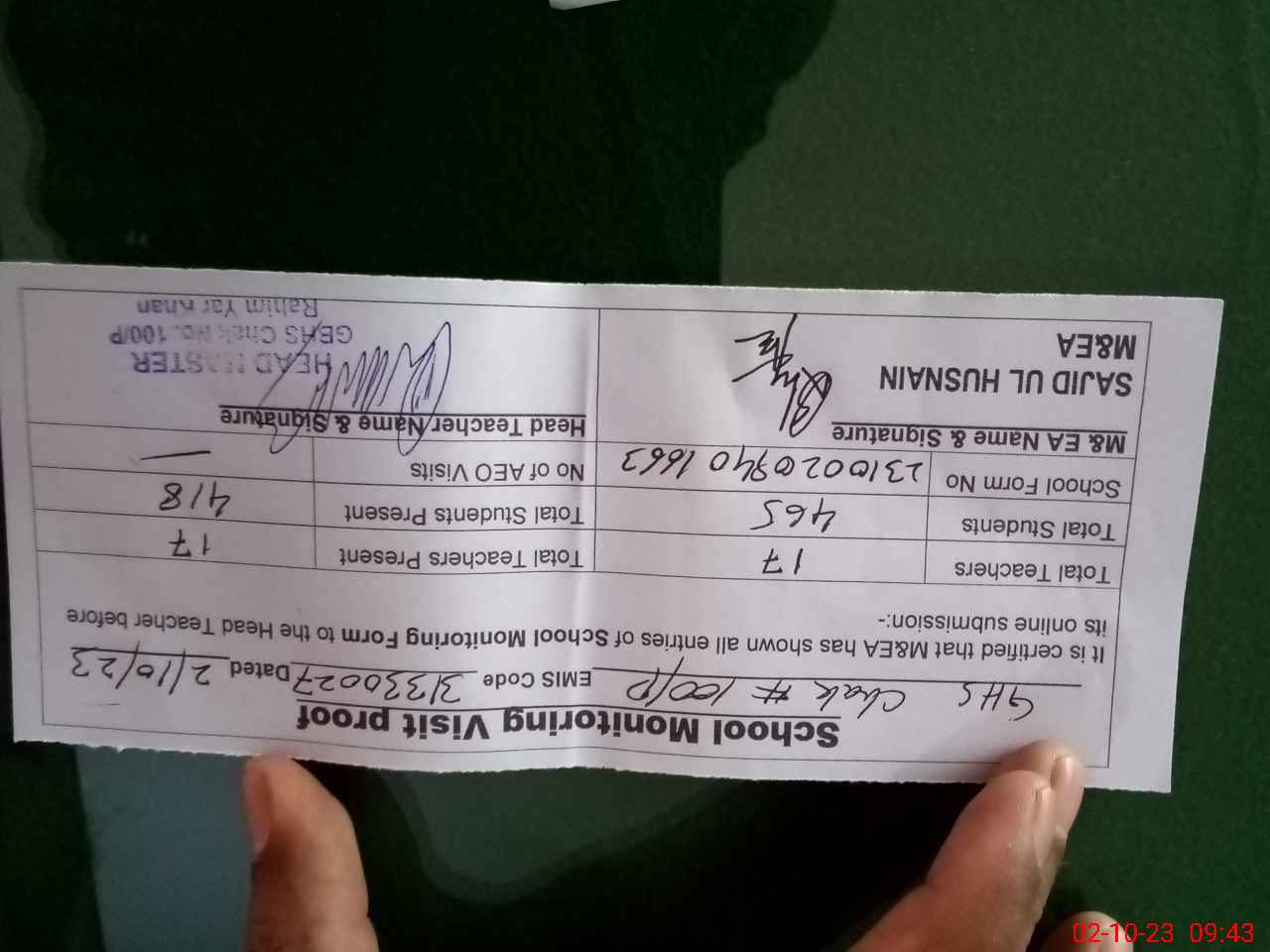 | Certified that this School was Inspected by the Undersigned MEA/DMO Today and the Information Stated Above is as Per Record. | |||||