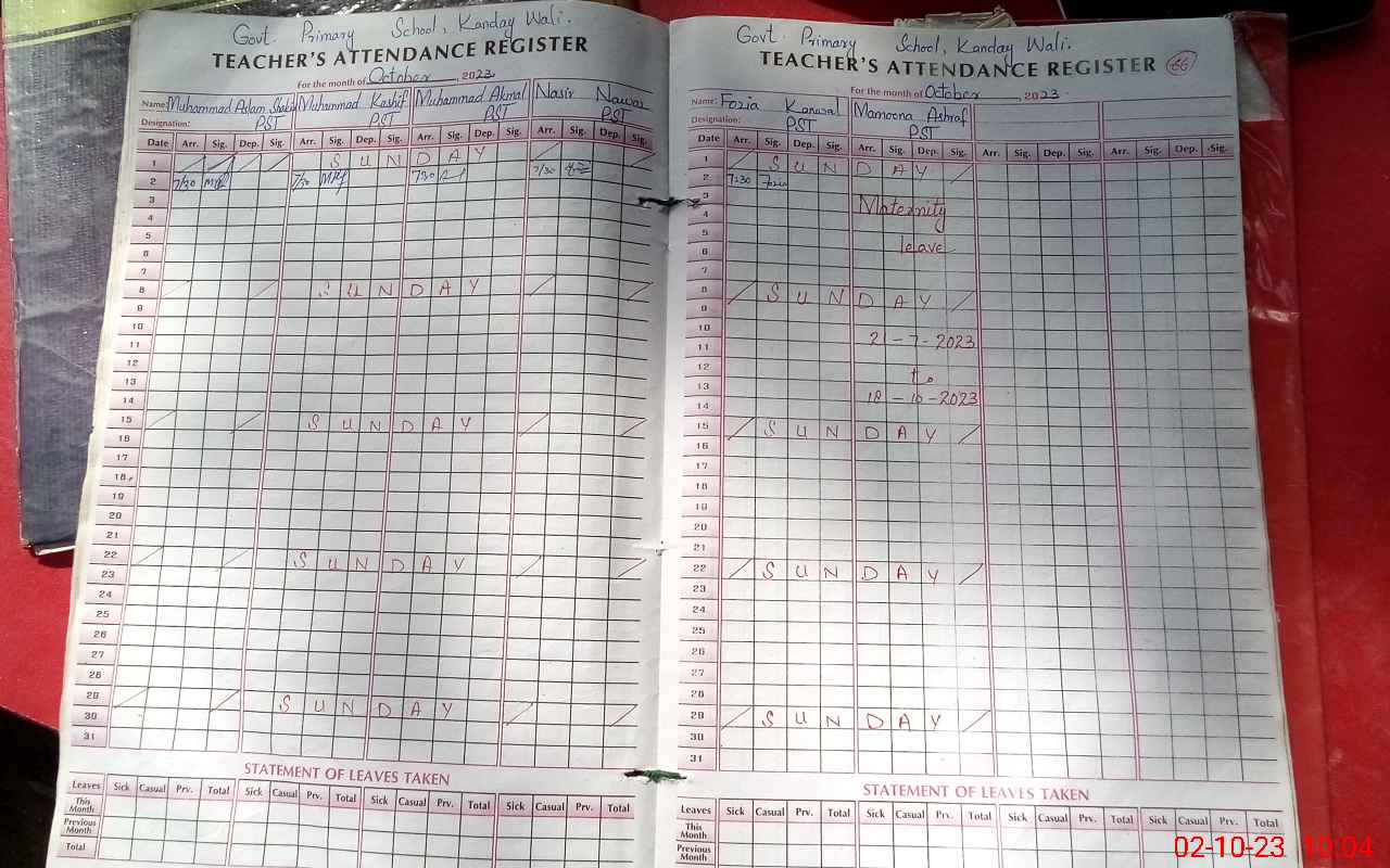 | CNIC | Full Name | Designation | R/C | Absence During Last Calender Month |