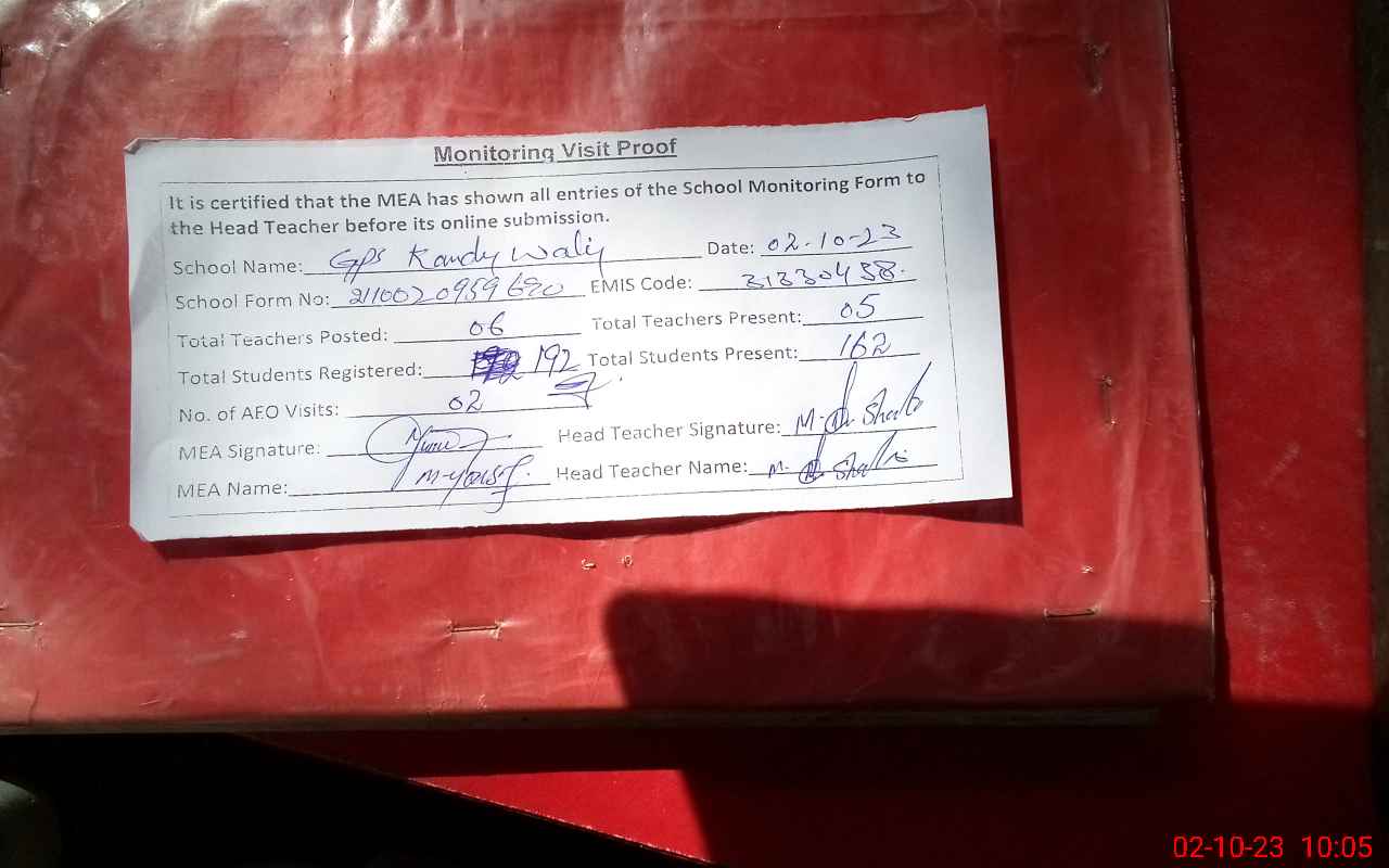 | Attendance Register | Head Teacher | MEA with School | Visit Proof |