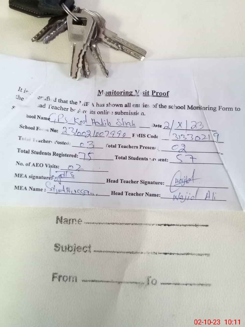 | EMIS Code: 31330219 | Name of School: GPS KOT HABIB SHAH | |||