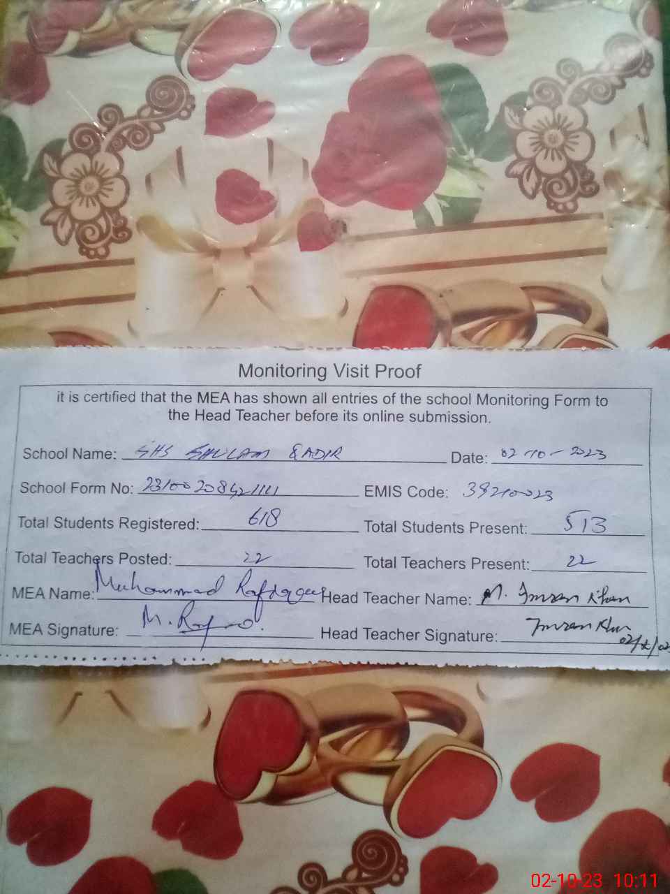 | EMIS Code: 39210023 | Name of School: GHS GHULAM QADIR | |||