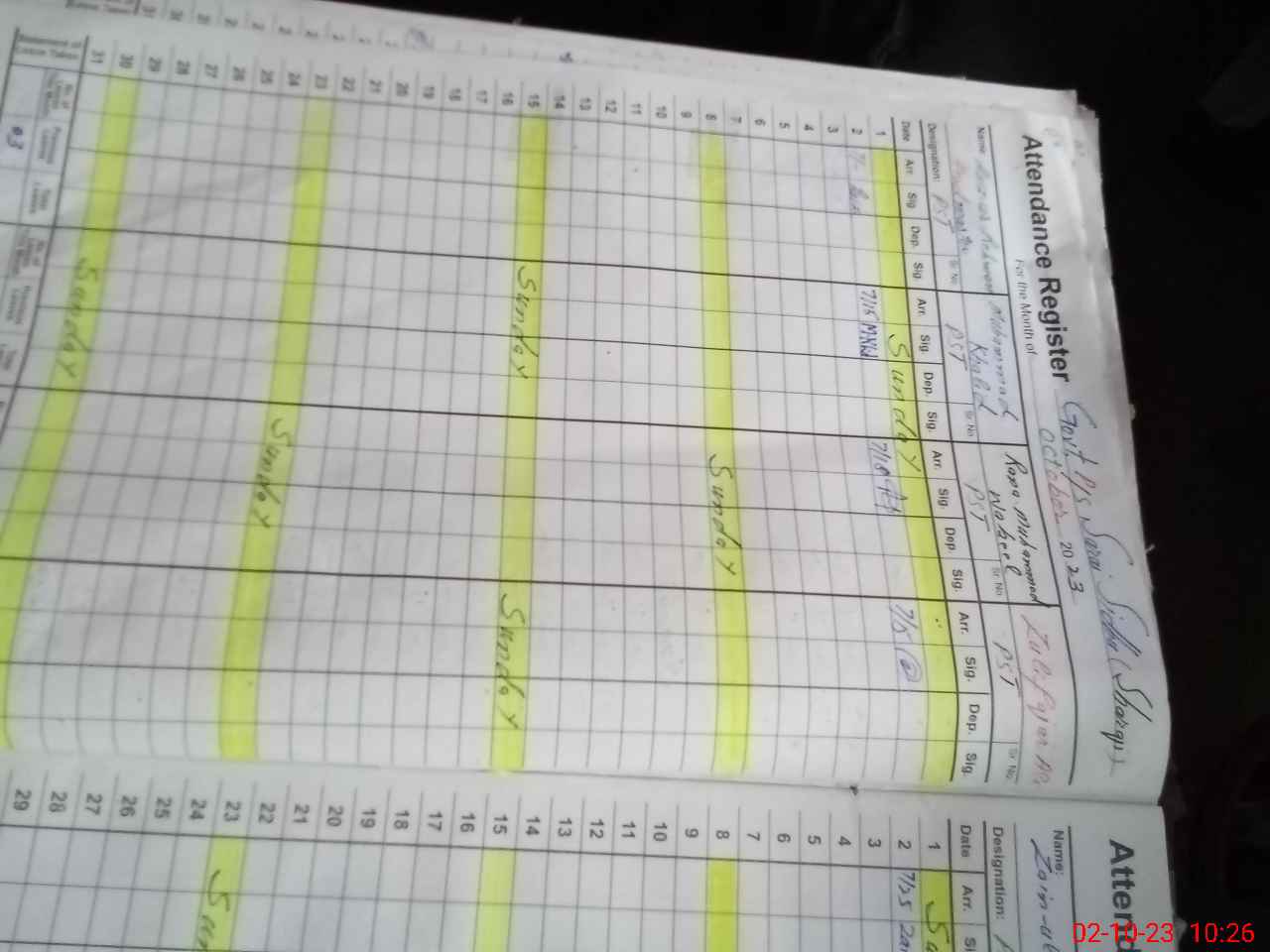 | CNIC | Full Name | Designation | R/C | Absence During Last Calender Month |