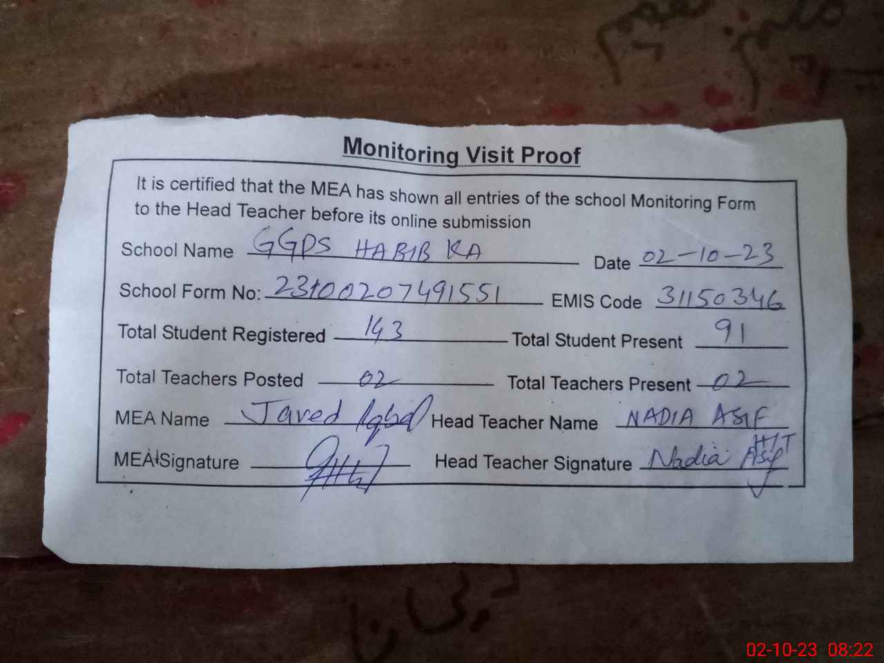 | EMIS Code: 31150346 | Name of School: GGPS HABIB KA | |||