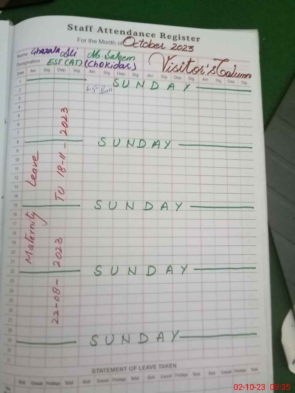 | 35**** | Sh**** Kh**** | 1 | 0 | 16 | 0 | 0 | 0 | 0 | 0 | 0 | 0 | Exam Duty | |