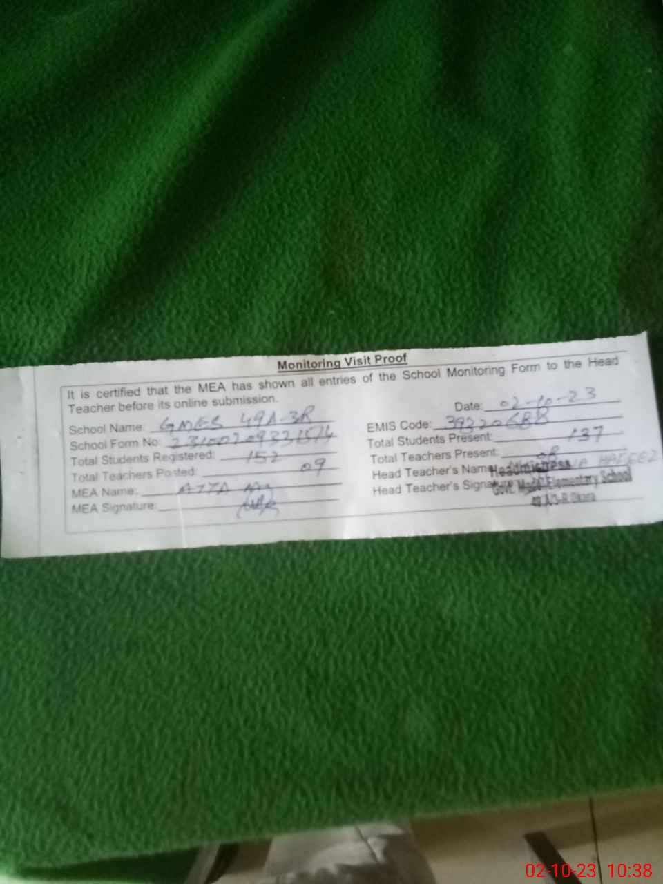 | EMIS Code: 39320688 | Name of School: GMES 49-A/3-R | |||