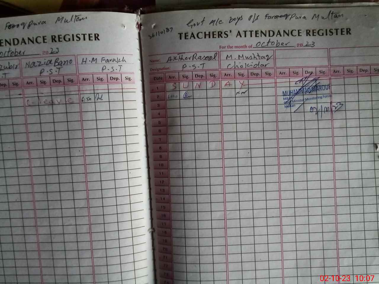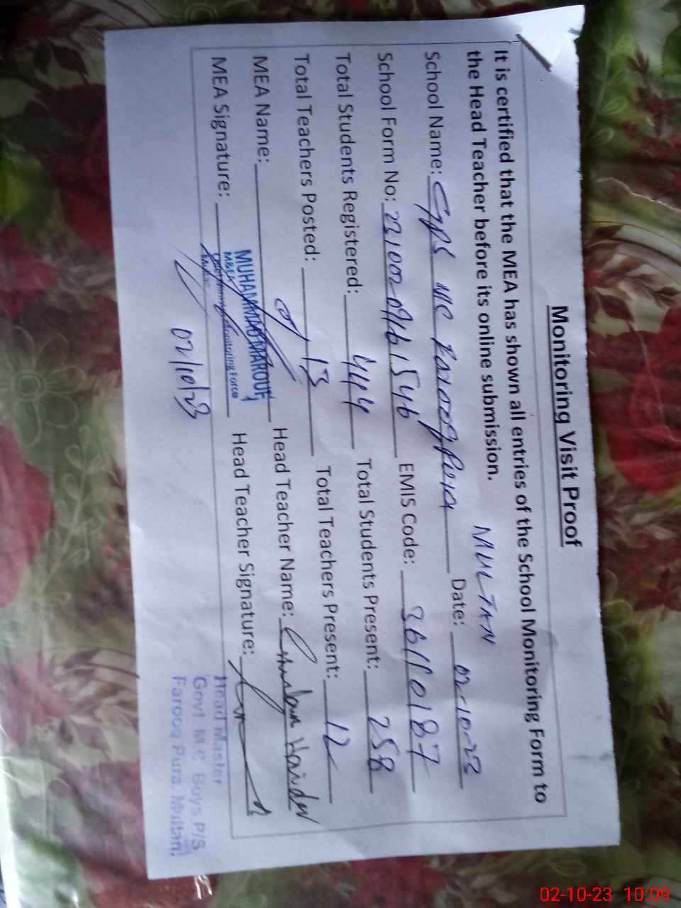 | EMIS Code: 36110187 | Name of School: GPS MC FAROOQ PURA MULTAN | |||