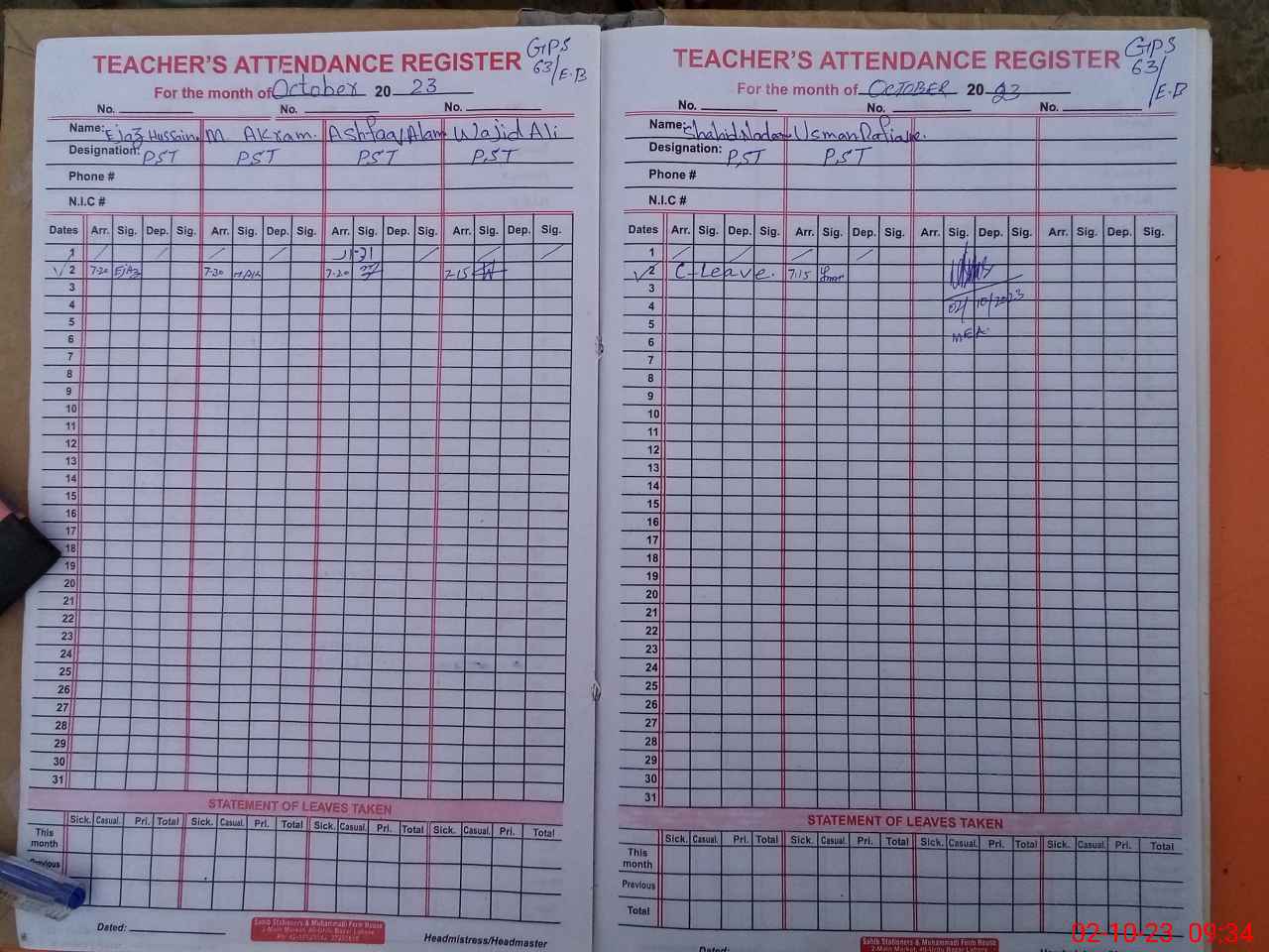 | Name: SH**** NA**** Designation: (School Headmaster's/Headmistress's) PST Phone/Cell Number: 03**** |
