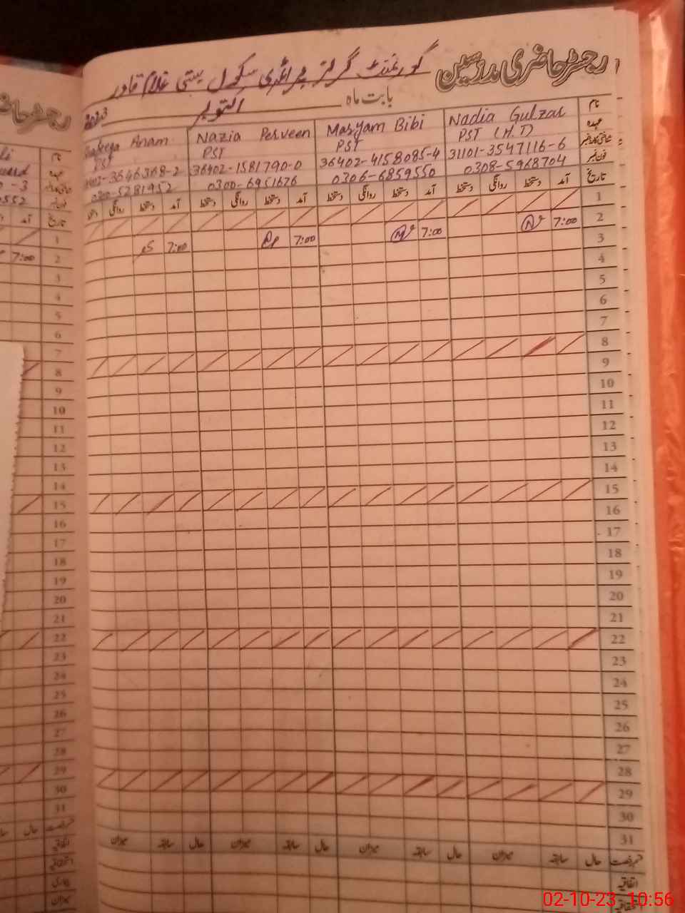 | Name: Sh**** An**** Designation: (School Headmaster's/Headmistress's) PST Phone/Cell Number: 03**** |