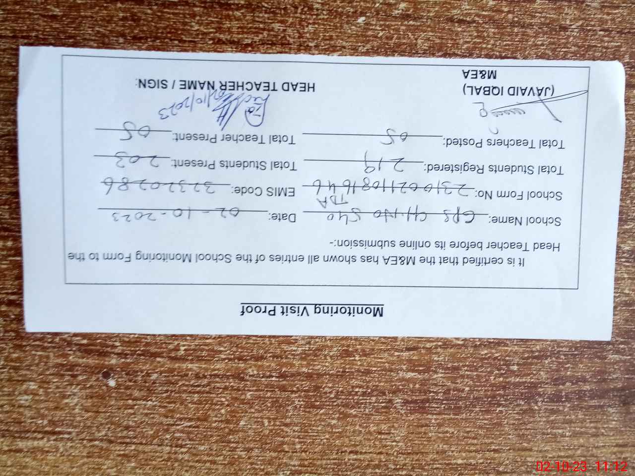 | Monitoring Date: 02-10-2023 | Start Time: 02-10-2023 10:45 AM | End Time: 02-10-2023 11:12 AM | Name of MEA: JA**** IQ**** | |