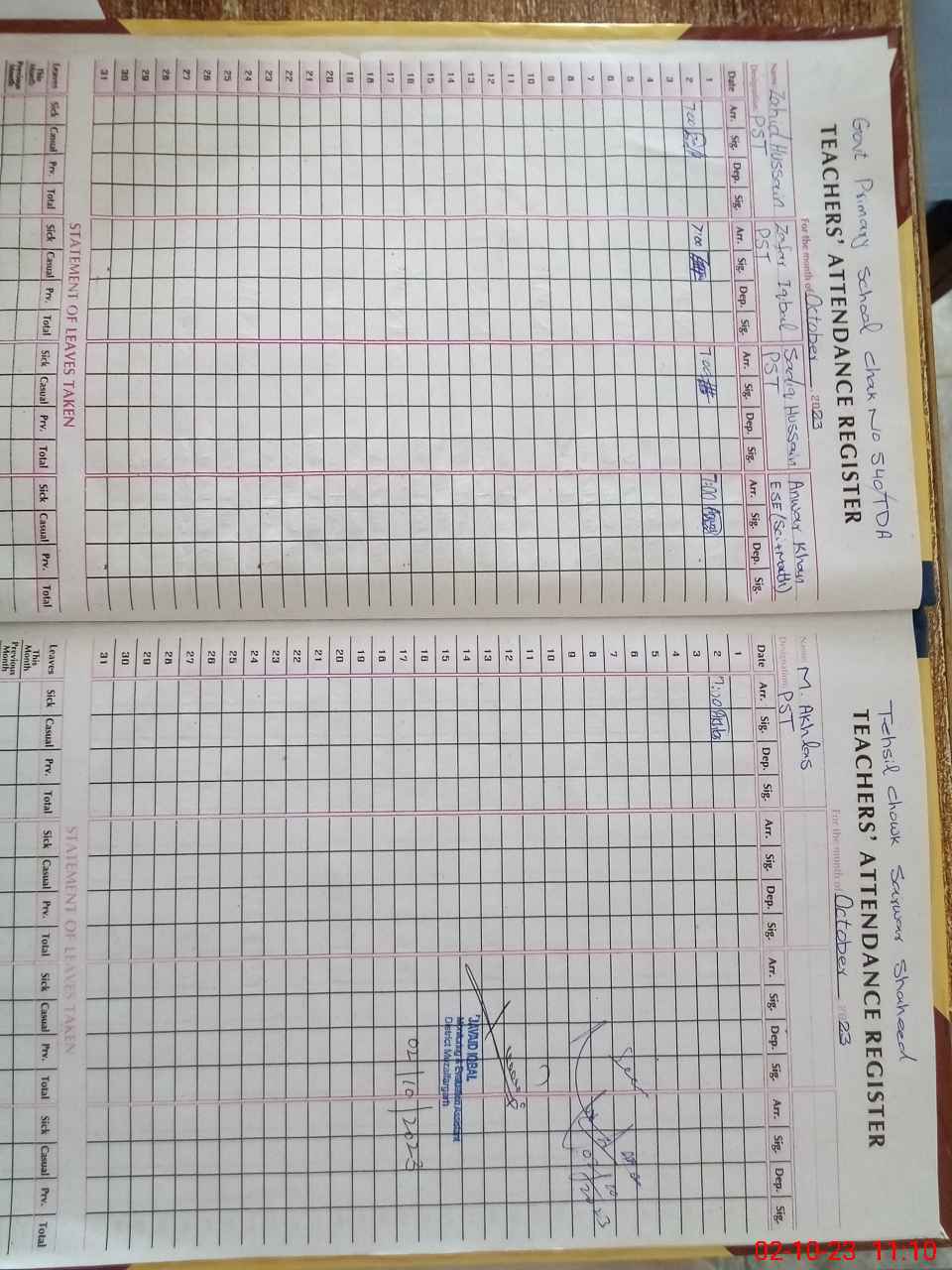 | Name: SA**** HU**** Designation: (School Headmaster's/Headmistress's) PST Phone/Cell Number: 03**** |