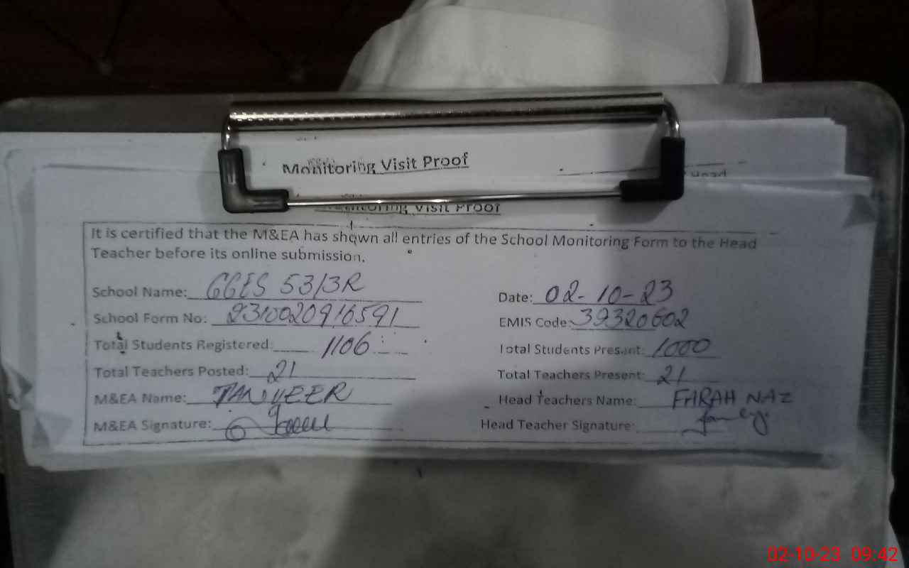 | Attendance Register | Head Teacher | MEA with School | Visit Proof |