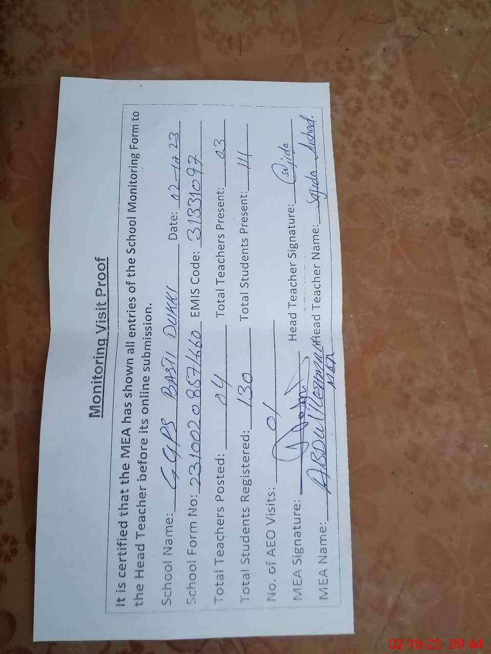 | Certified that this School was Inspected by the Undersigned MEA/DMO Today and the Information Stated Above is as Per Record. | |||||