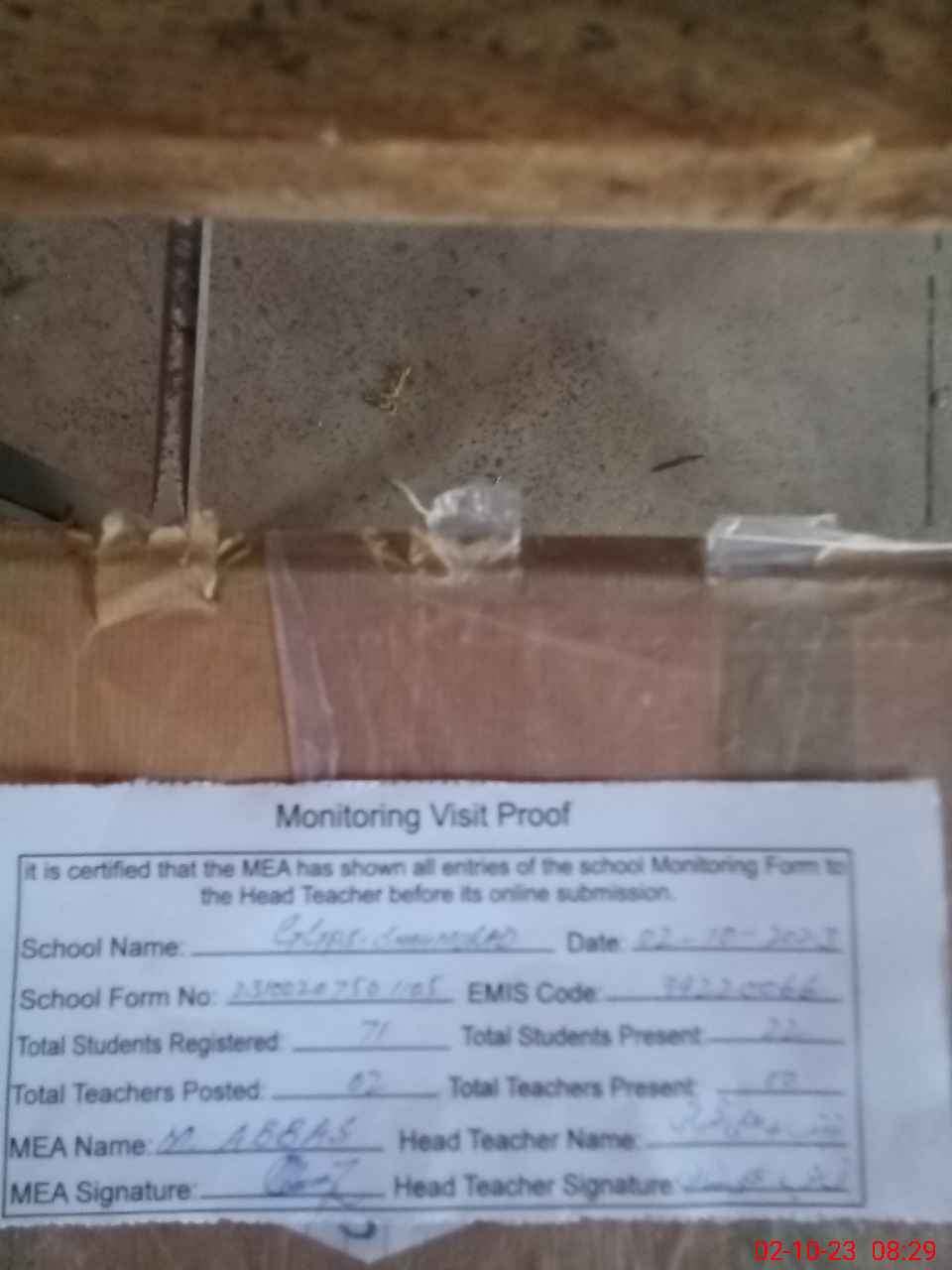 | Certified that this School was Inspected by the Undersigned MEA/DMO Today and the Information Stated Above is as Per Record. | |||||