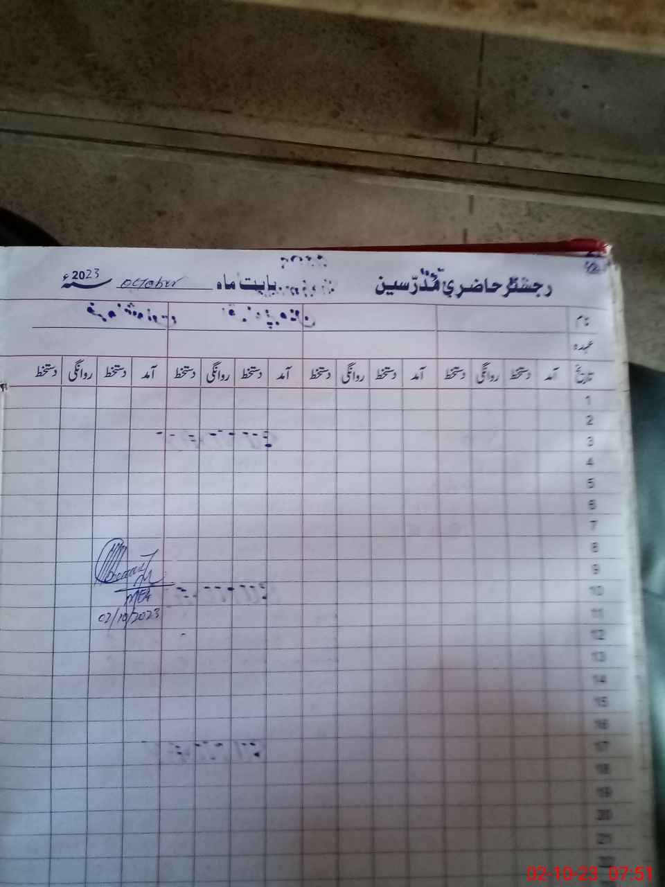 | Name: FA**** SH**** Designation: (School Headmaster's/Headmistress's) PST Phone/Cell Number: 03**** |