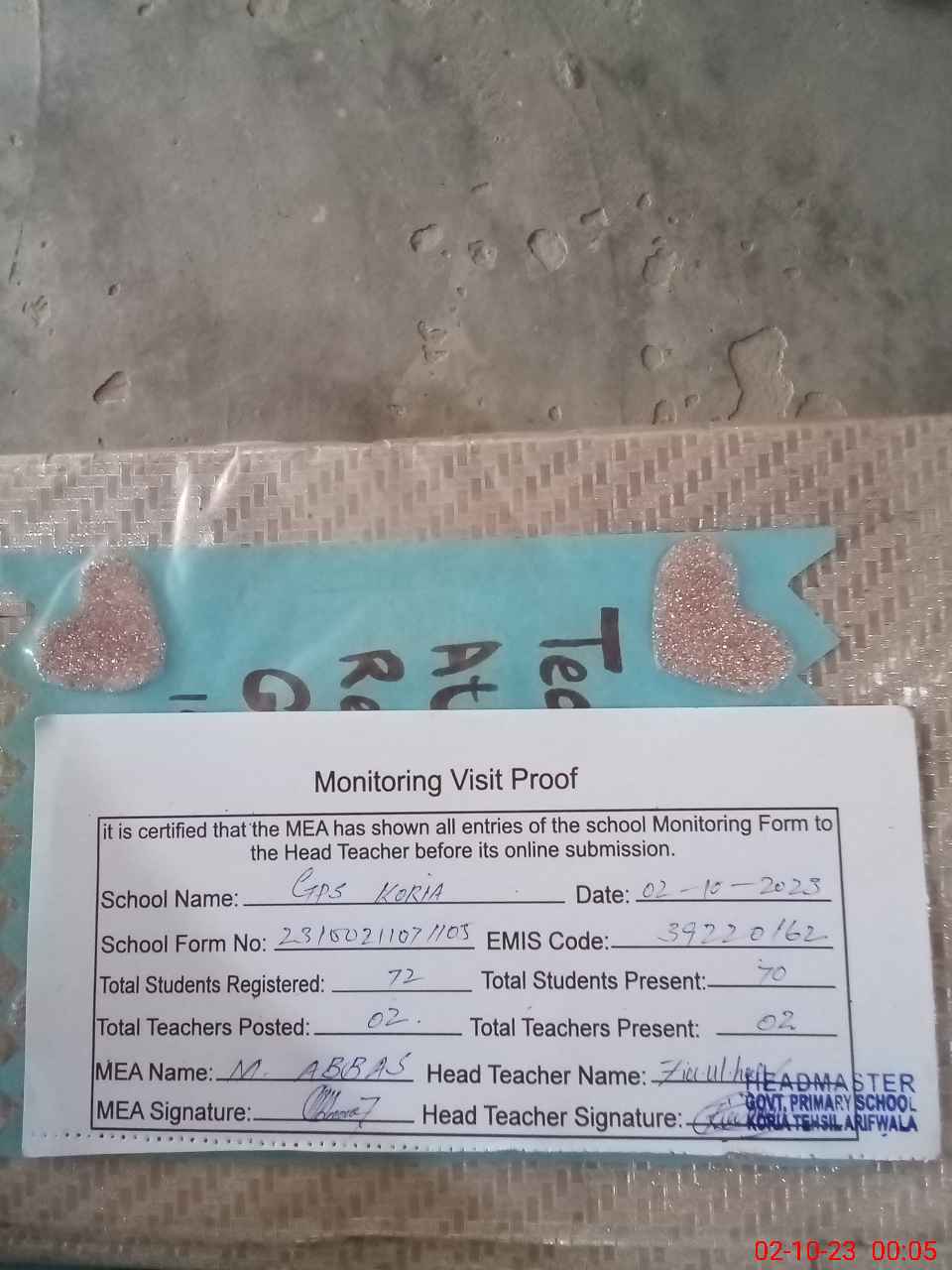 | EMIS Code: 39220162 | Name of School: GPS KORIA | |||