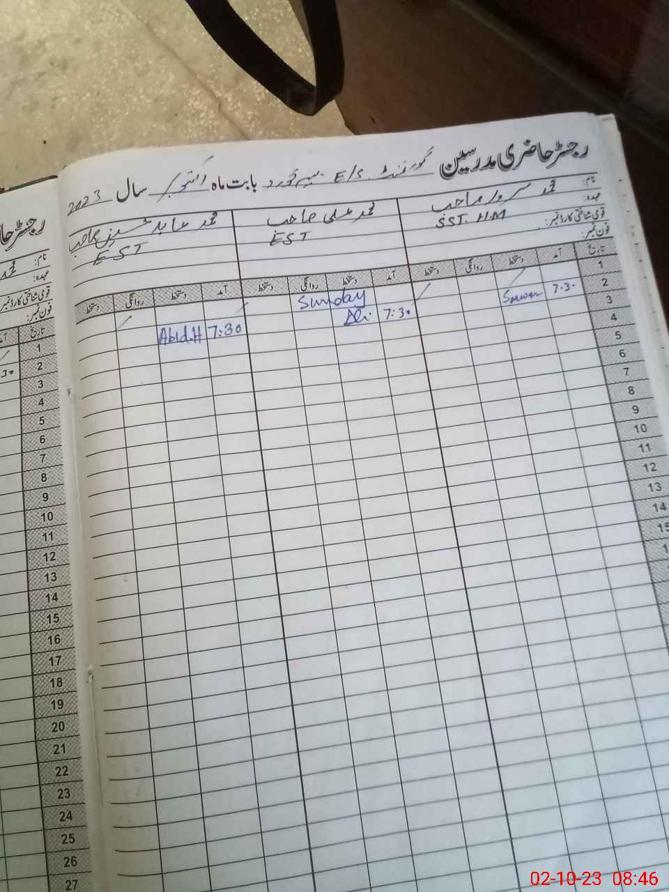 | Name: Za**** Ja**** Designation: (School Headmaster's/Headmistress's) EST Phone/Cell Number: 03**** |