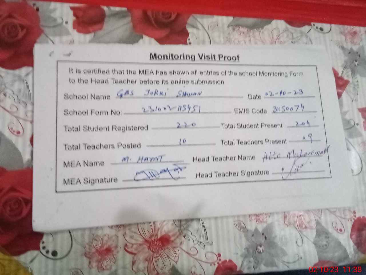| Certified that this School was Inspected by the Undersigned MEA/DMO Today and the Information Stated Above is as Per Record. | |||||