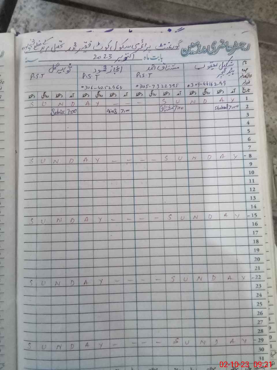 | Name: SH**** YA**** Designation: (School Headmaster's/Headmistress's) PST Phone/Cell Number: 03**** |
