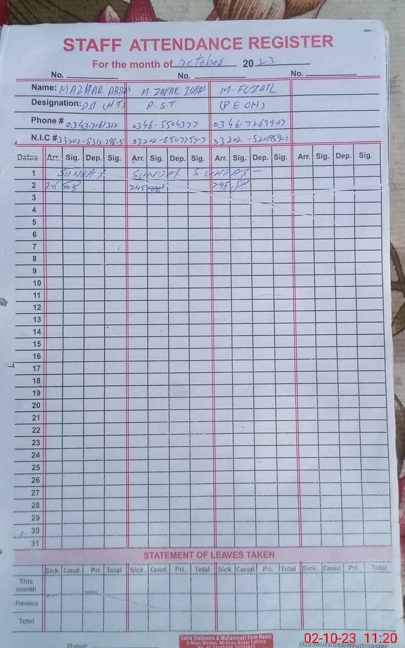 | Name: MA**** AB**** Designation: (School Headmaster's/Headmistress's) PST/ Phone/Cell Number: 03**** |