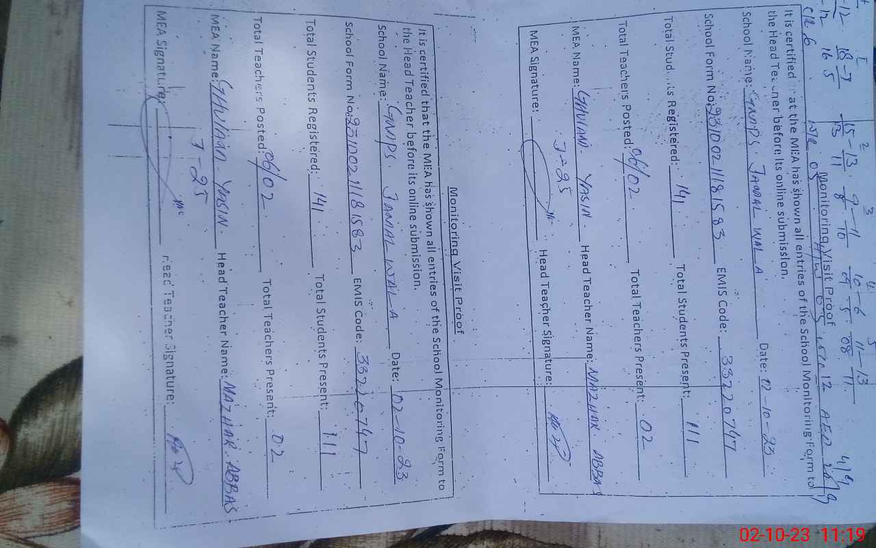 | EMIS Code: 33220747 | Name of School: GMPS JAMAL WALA | |||
