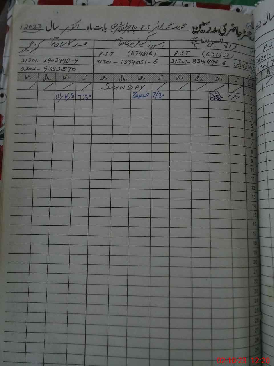 | CNIC | Full Name | Designation | R/C | Absence During Last Calender Month |