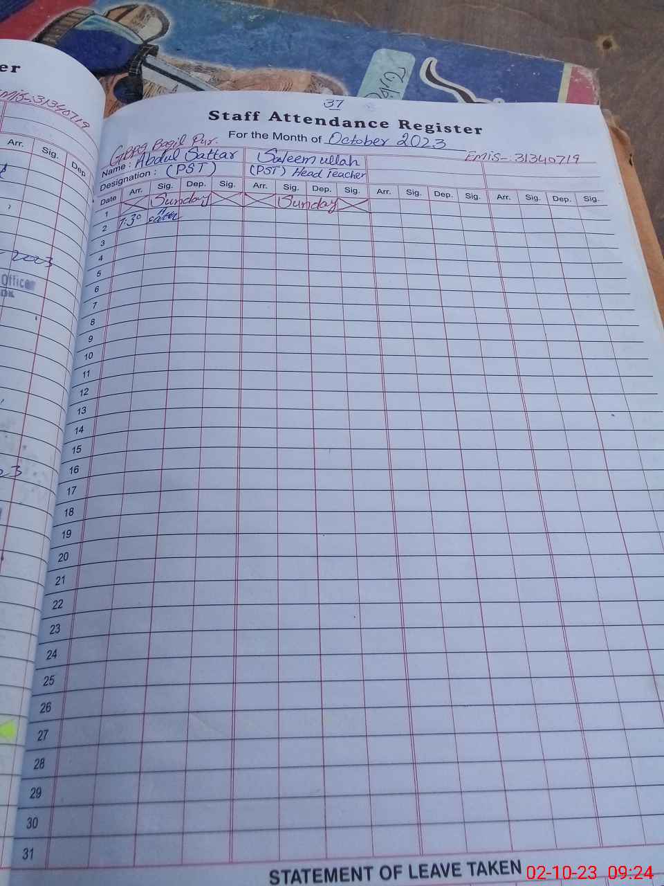 | 31**** | Sa**** Ul**** | 1 | 0 | 0 | 0 | 0 | 0 | 0 | 0 | 0 | 0 | Absent (Un-Authorized) | |