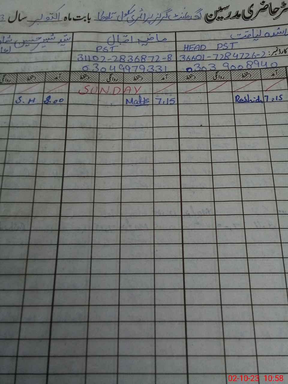 | Name: RA**** LI**** Designation: (School Headmaster's/Headmistress's) ESE SCI MATH Phone/Cell Number: 03**** |