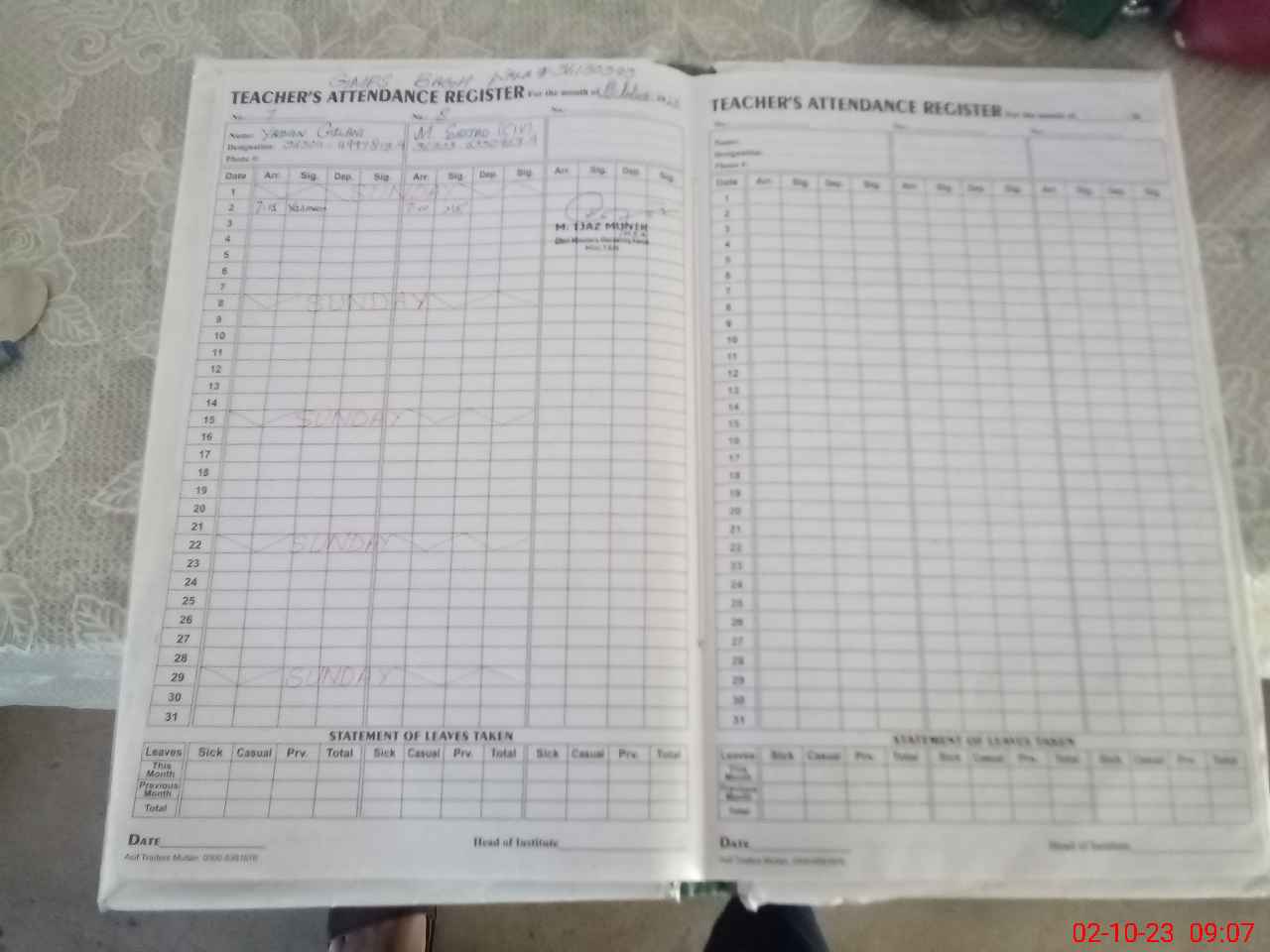 | Name: ZA**** ZA**** Designation: (School Headmaster's/Headmistress's) INCHARGE Phone/Cell Number: 03**** |
