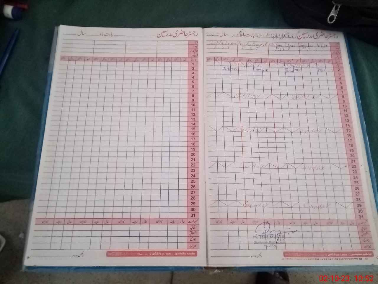 | CNIC | Full Name | Designation | R/C | Absence During Last Calender Month |