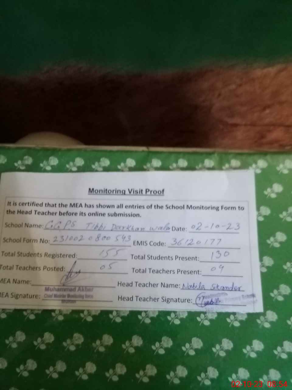 | EMIS Code: 36120177 | Name of School: GGPS TIBBI DARKHAN WALA | |||