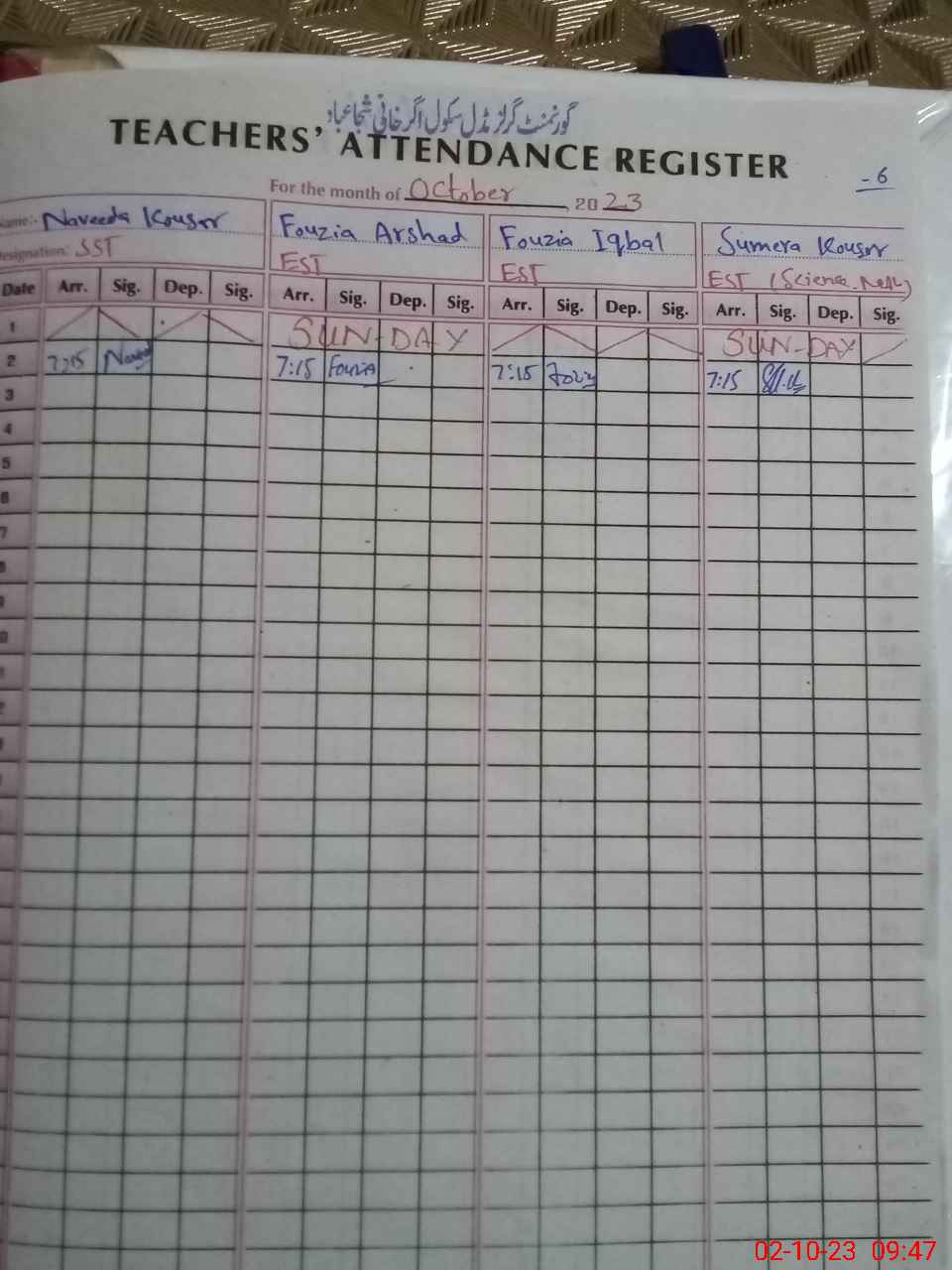 | No. of Students Present - Female | 42 | 0 | 22 | 32 | 21 | 44 | 28 | 26 | 32 | 47 | 23 | 317 | ||||