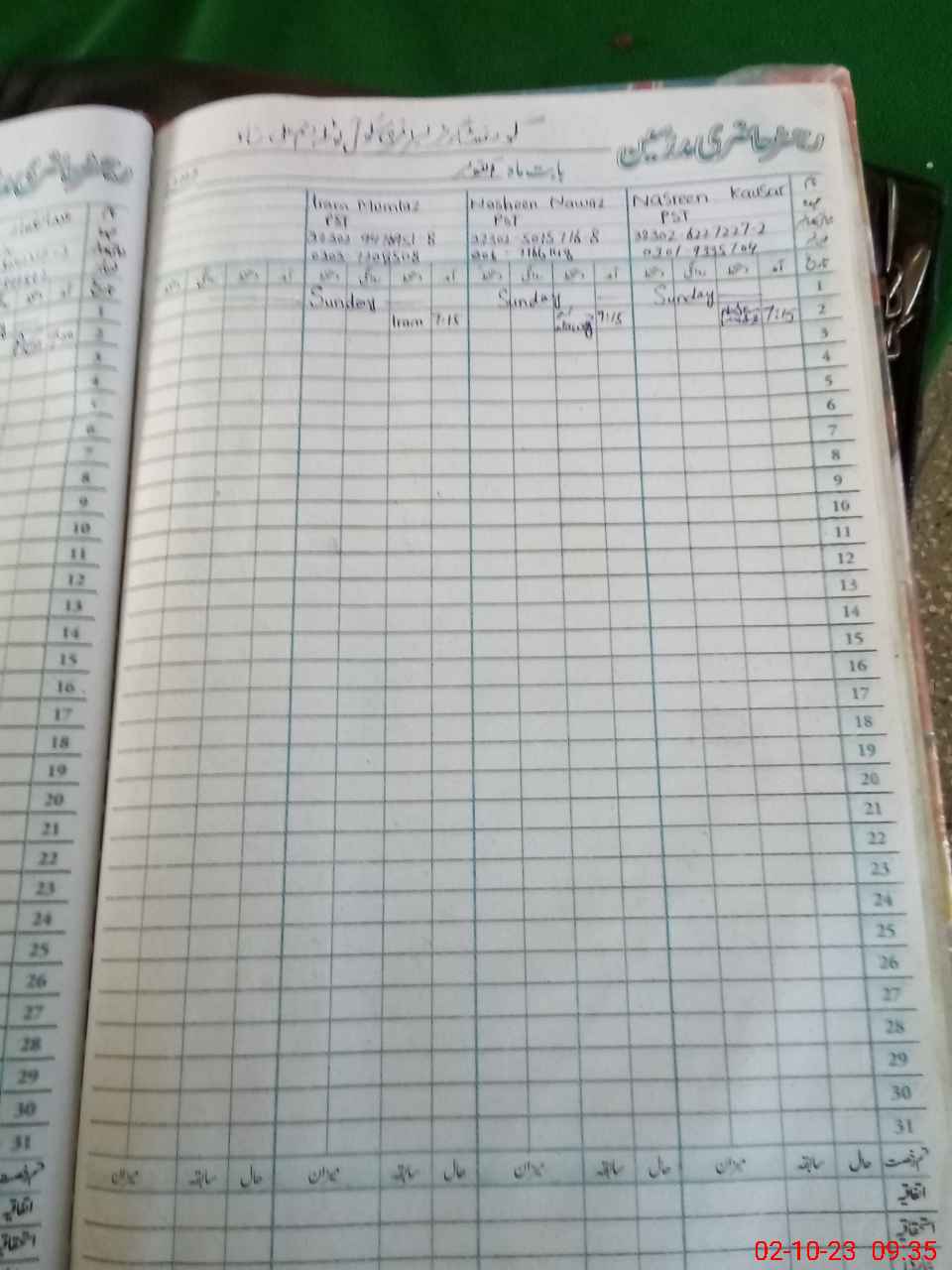 | CNIC | Full Name | Designation | R/C | Absence During Last Calender Month |