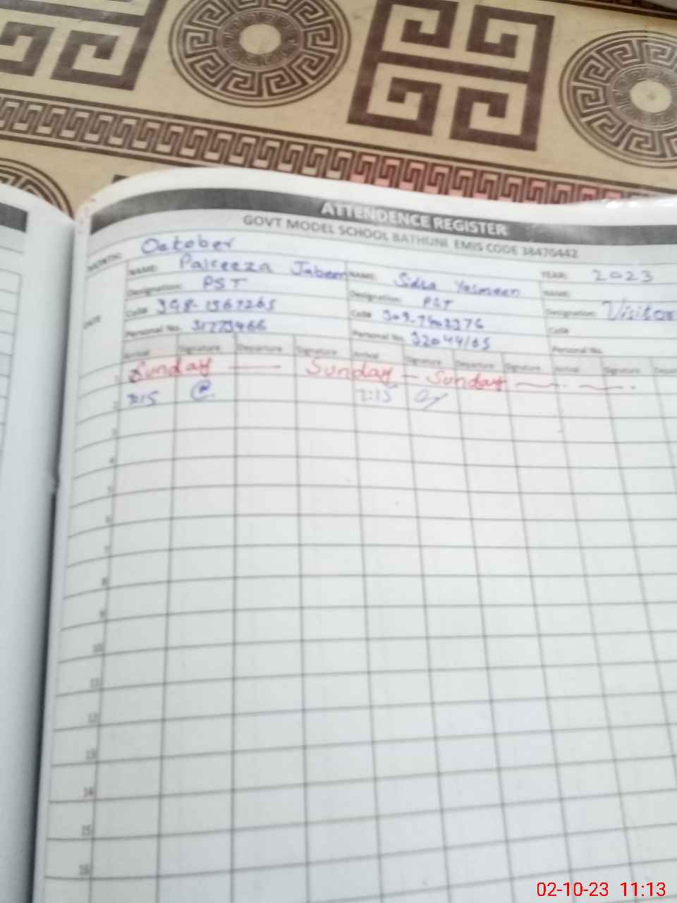 | Name: PA**** JA**** Designation: (School Headmaster's/Headmistress's) PST Phone/Cell Number: 03**** |