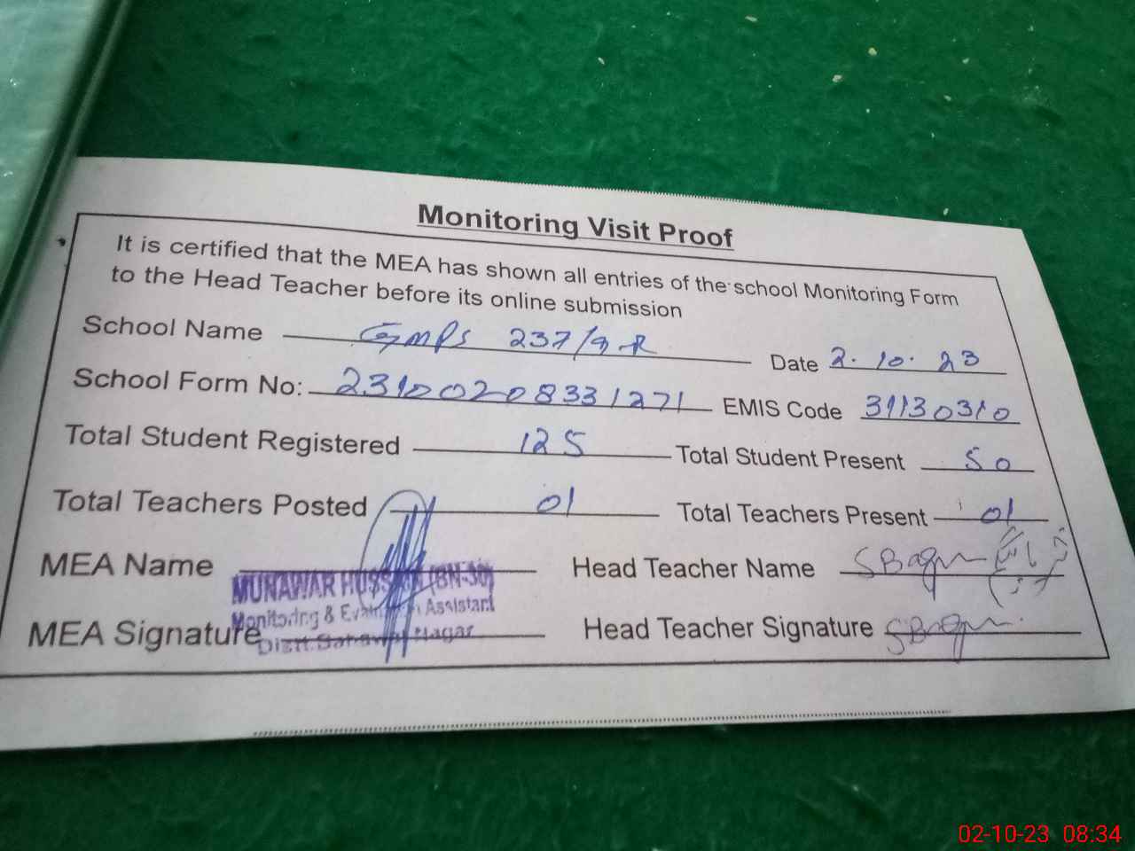 | EMIS Code: 31130310 | Name of School: GMPS CHAK NO. 237/9-R | |||