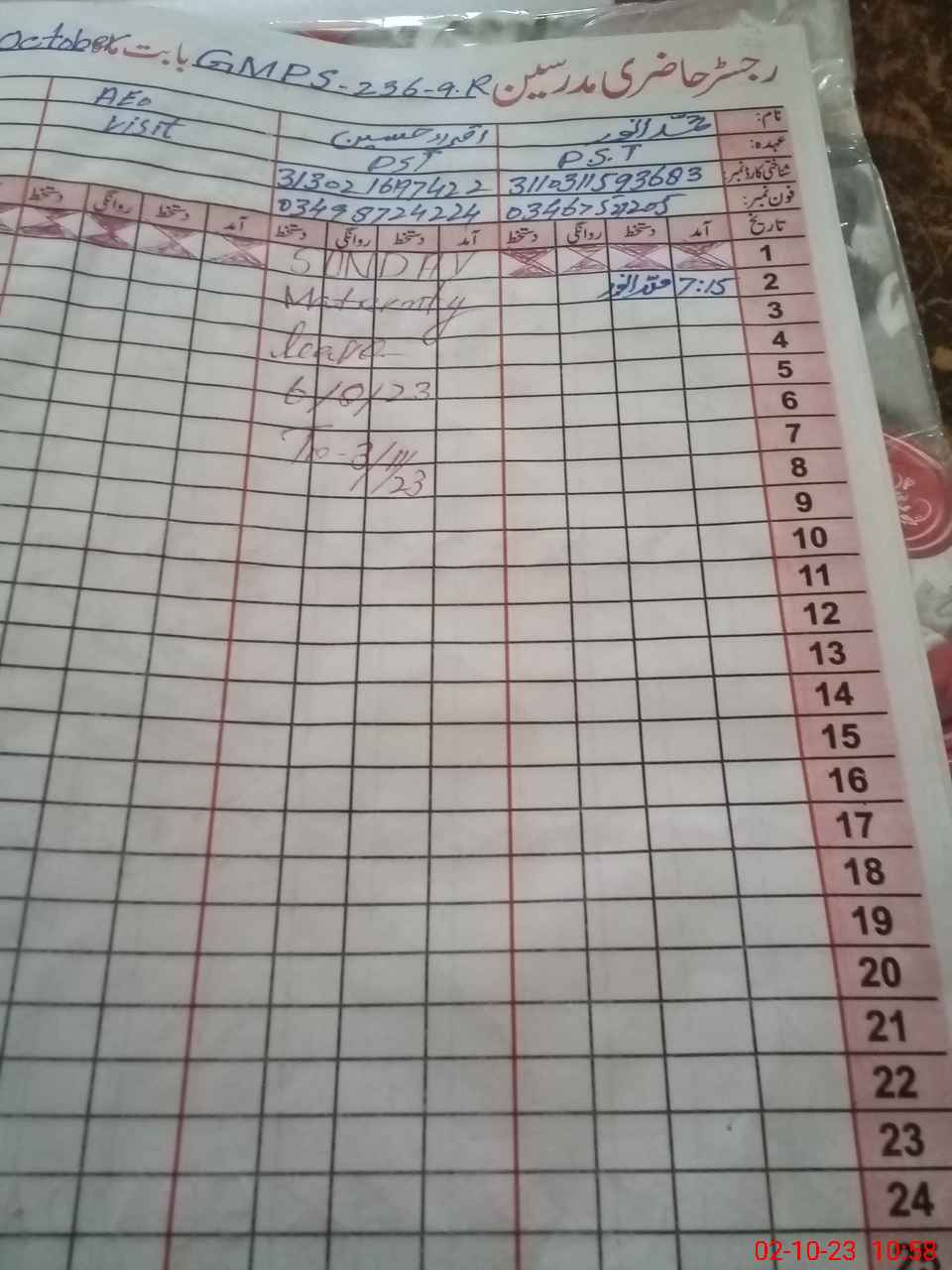| Name: Iq**** Hu**** Designation: (School Headmaster's/Headmistress's) PST Phone/Cell Number: 03**** |