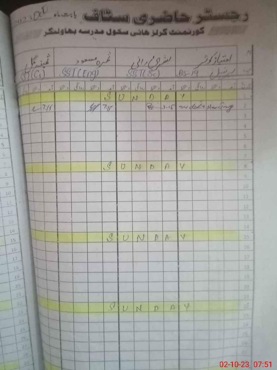 | 31**** | Sh**** Za**** | 1 | 2 | 0 | 0 | 0 | 0 | 0 | 0 | 0 | 2 | Absent (Un-Authorized) | |