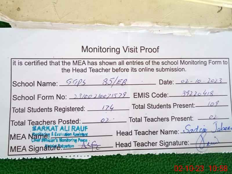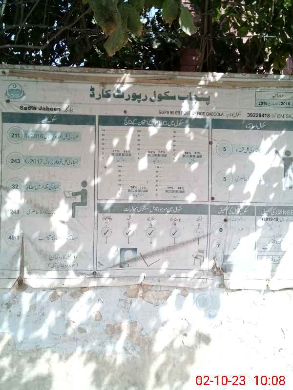 | EMIS Code: 39220418 | Name of School: GGPS 85 EB POST OFFICE QABOOLA | |||