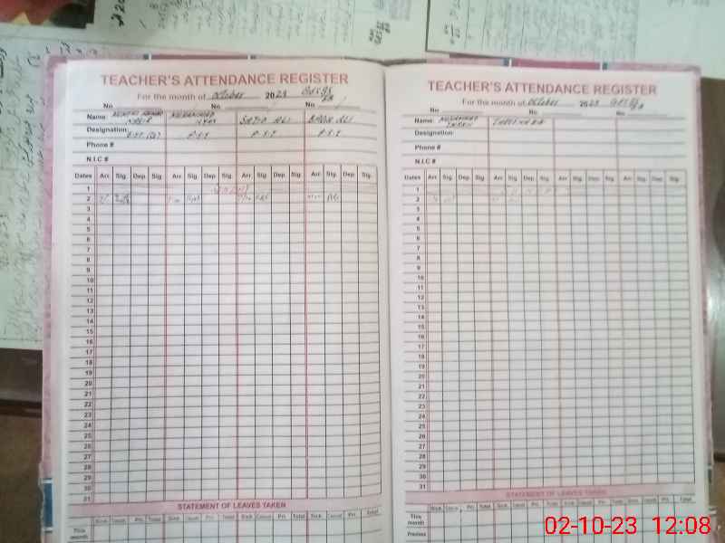 | CNIC | Full Name | Designation | R/C | Absence During Last Calender Month |