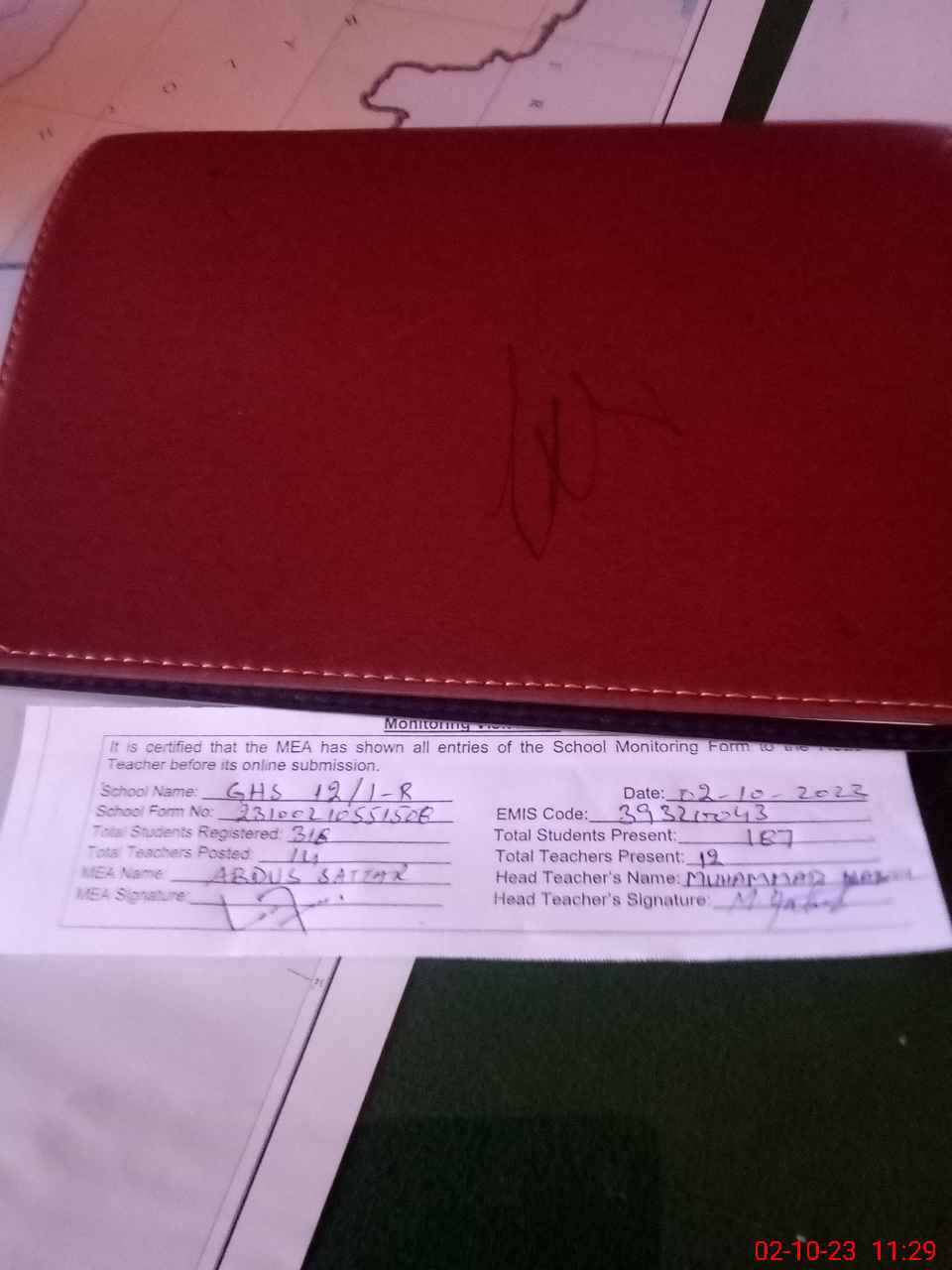 | Attendance Register | Head Teacher | MEA with School | Visit Proof |