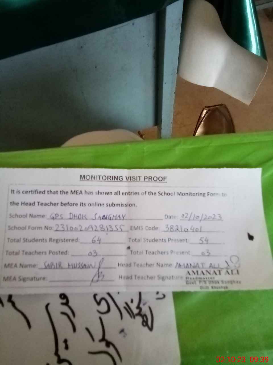 | EMIS Code: 38210401 | Name of School: GPS DHOK SANGHAY | |||