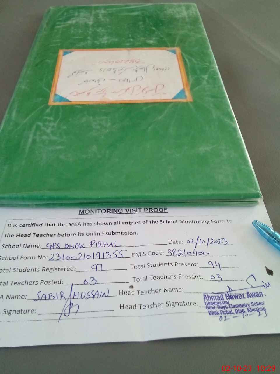 | EMIS Code: 38210400 | Name of School: GPS DHOK PIRHAL | |||