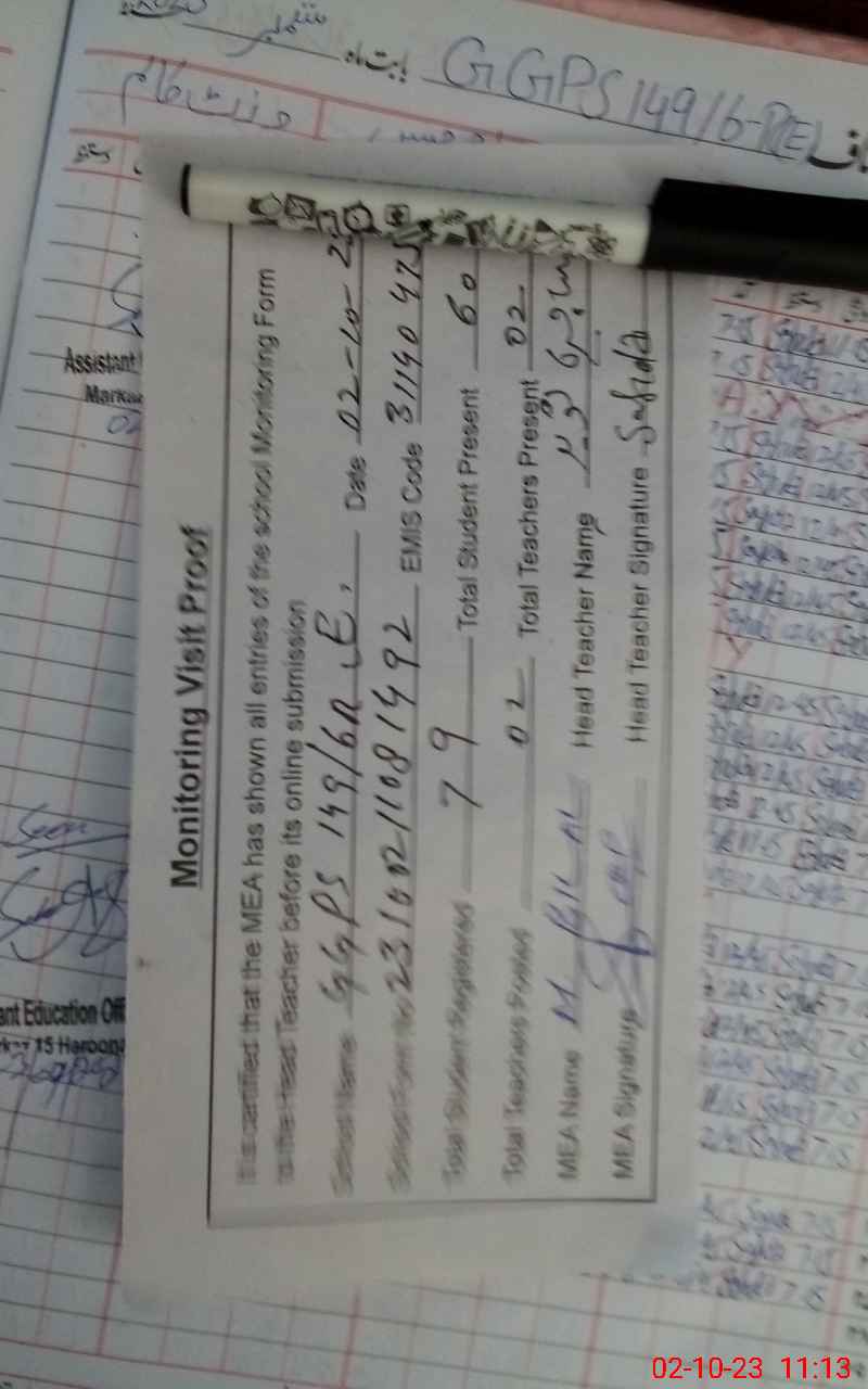 | Attendance Register | Head Teacher | MEA with School | Visit Proof |